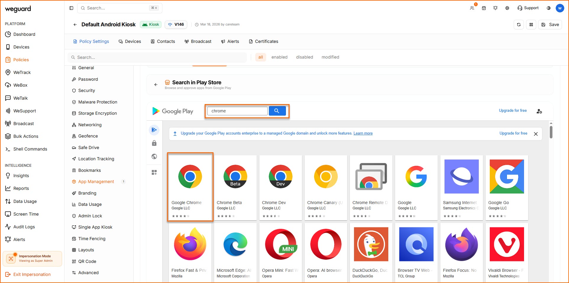 WeGuard MDM enables easy installation and distribution of Google Play Store applications across managed devices. It simplifies app deployment, allowing administrators to roll out applications quickly while maintaining better control and efficiency.