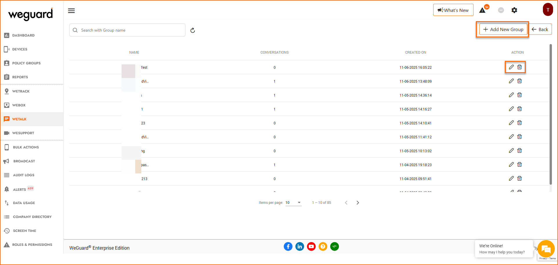 - When a device is deleted from a custom WeTalk group, all associated conversations of that group are removed from the device.