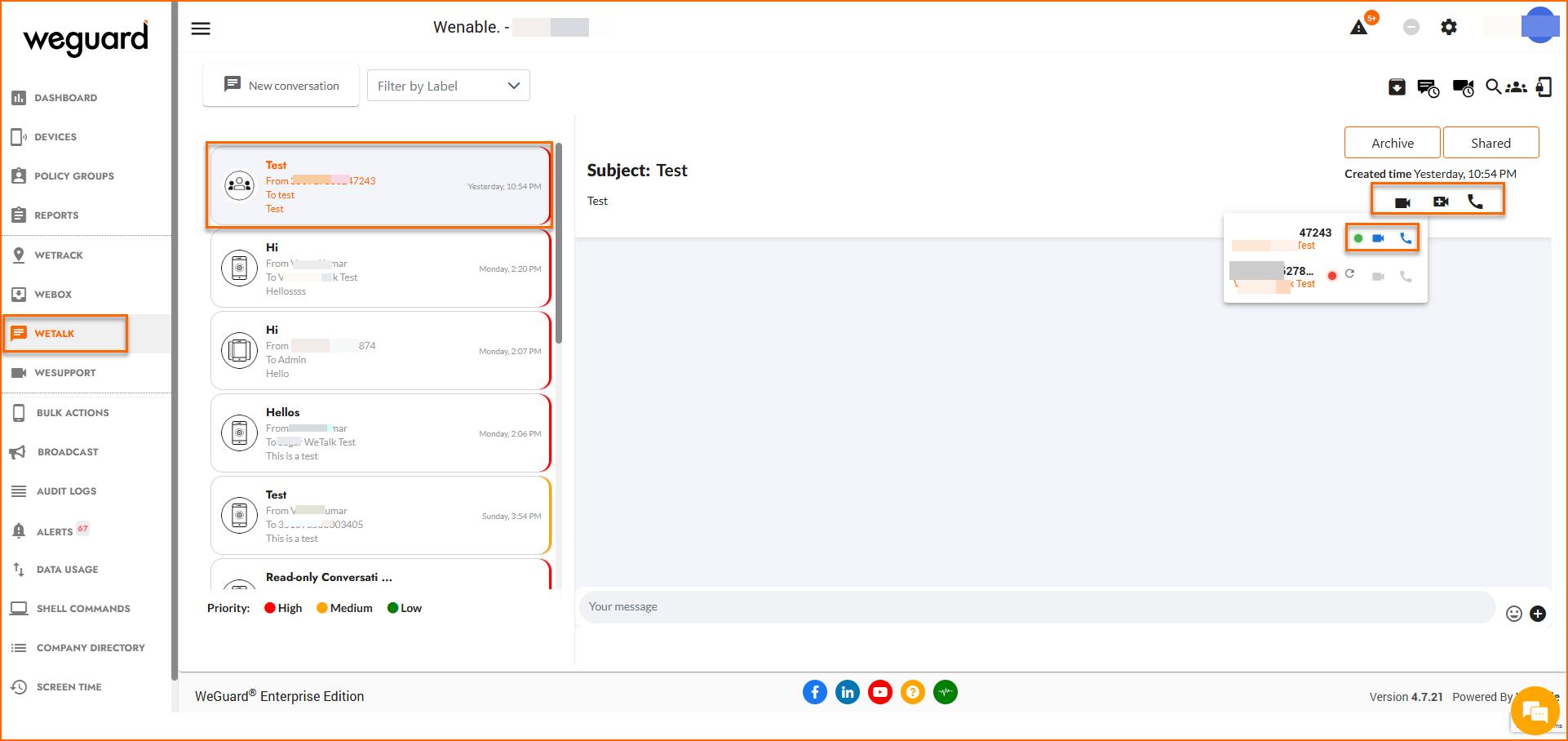 WeTalk, part of WeGuard’s Pro Application suite, enables seamless communication between administrators and end users via chat and video calls. Designed with productivity and accessibility in mind, WeTalk includes advanced features such as AI-based language translation and a Message Speak Out function, which reads messages aloud in the user’s preferred language, regardless of the original language. This helps minimize visual distractions by delivering messages via audio at maximum volume, overriding existing sound settings.