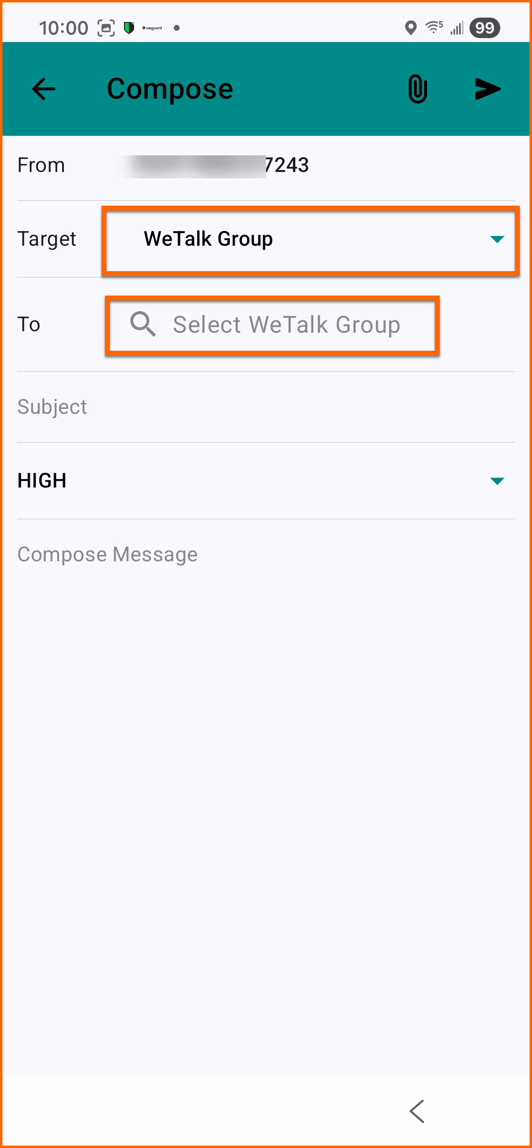 Custom Group: Will be available if the WeTalk Groups is selected in Target